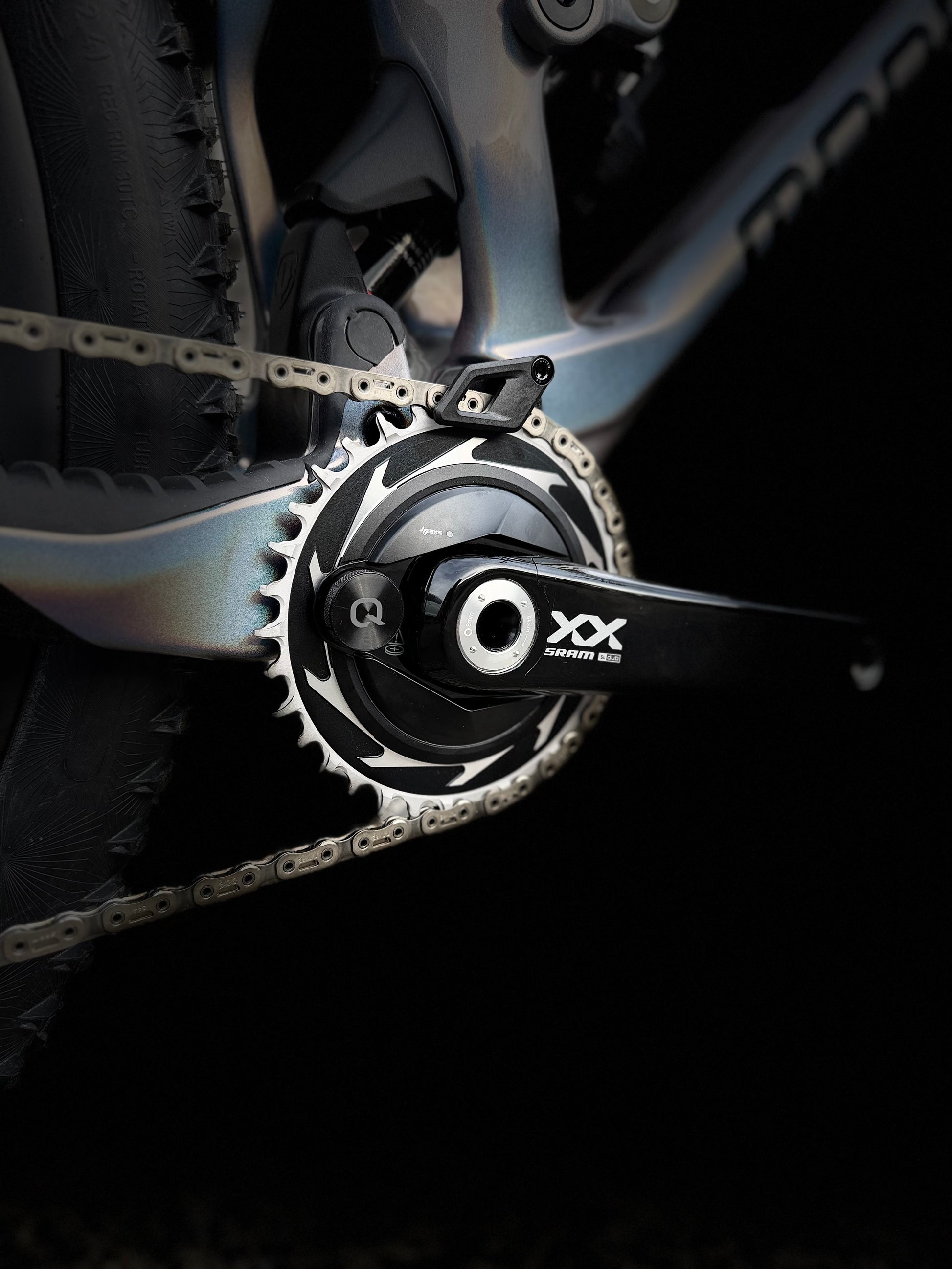 Transmission : SRAM XX SL Quarq, 12 vitesses, chaîne & cassette 10-52 dents.