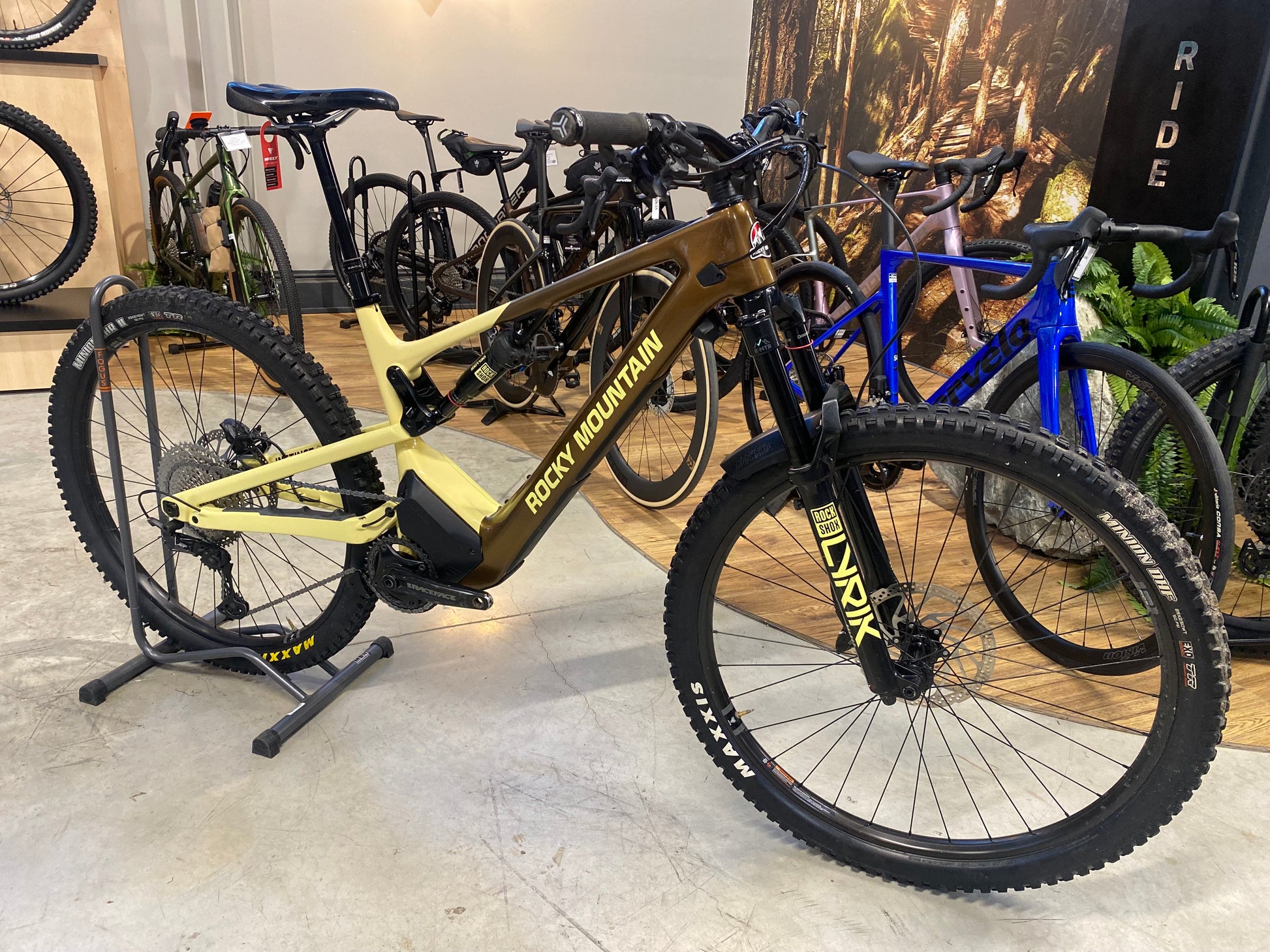Cadre carbone Smoothwall (triangle avant) + triangle arrière aluminium, suspension Smoothlink, débattement 160 mm, Boost 148 mm, intégration batterie Rocky Mountain.