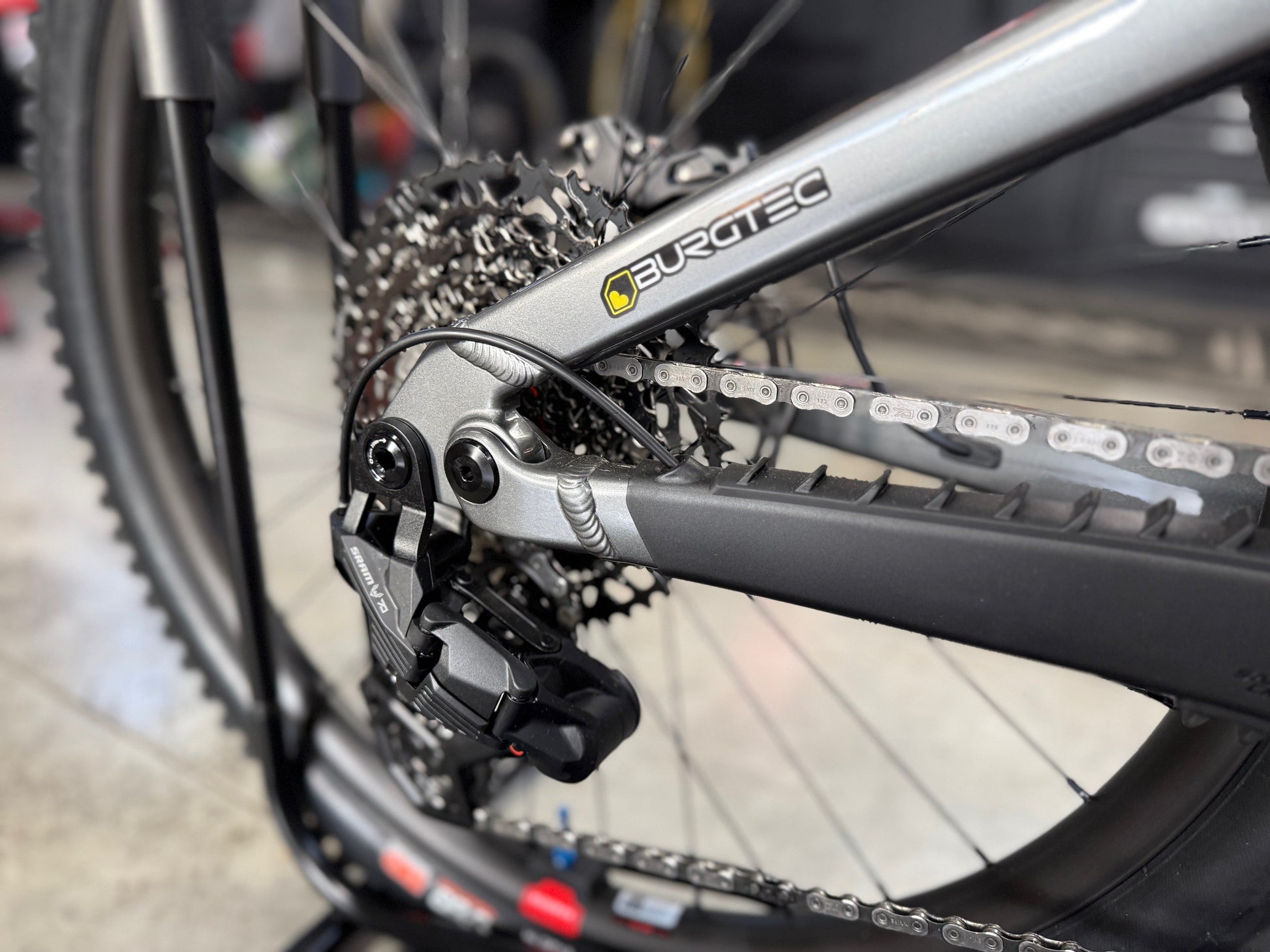 Des stickers de cadre personnalisés fait main au magasin, au combo complet Burgtec Bleu, il se démarque des bikes d'origine, avec des périphériques revus et améliorés.